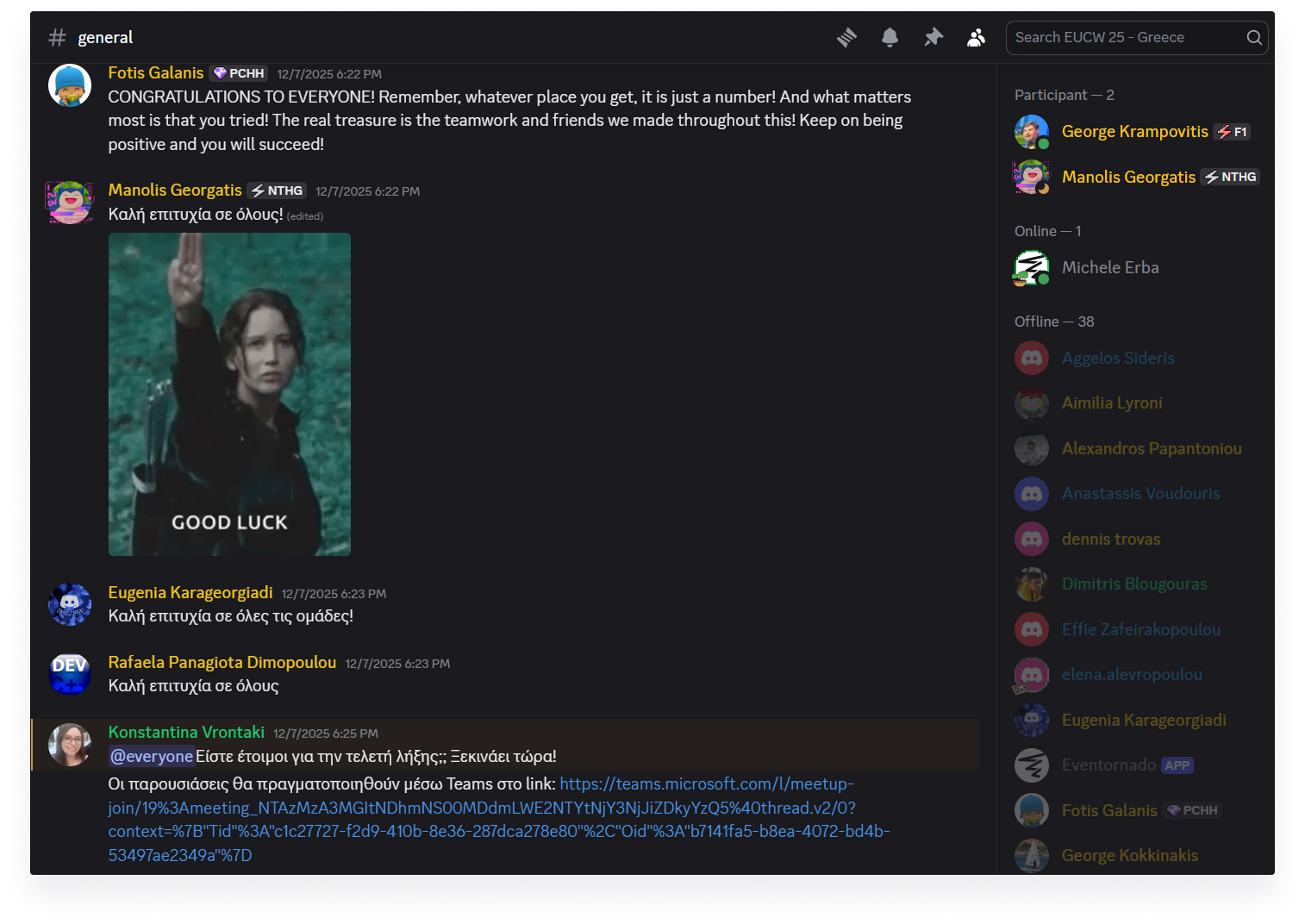 Each local hackathon got its own Discord server, so participants from one country only collaborated with peers from the same local hackathon.