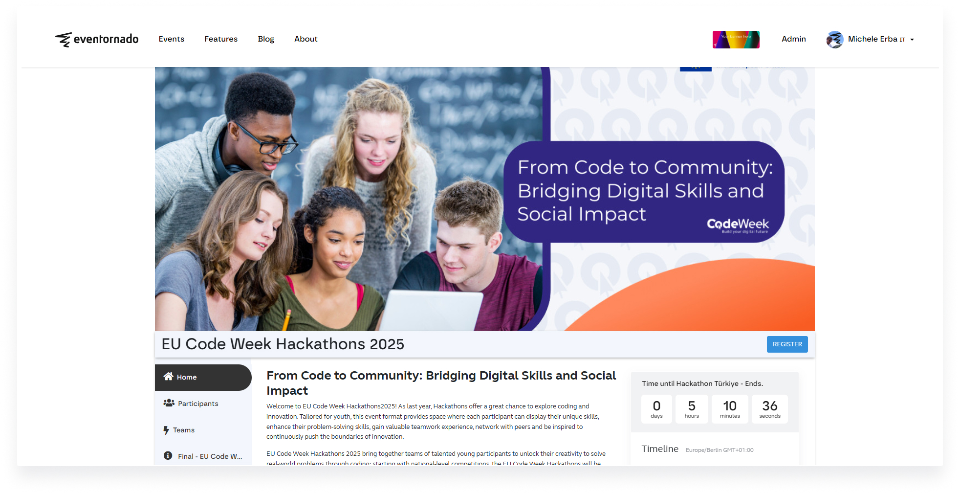 In this article, we showcase the EU Code Week Hackathons 2025 use case, where Eventornado allowed the organizers to run multiple local hackathons simultaneously while keeping everything structured, automated, and professional.