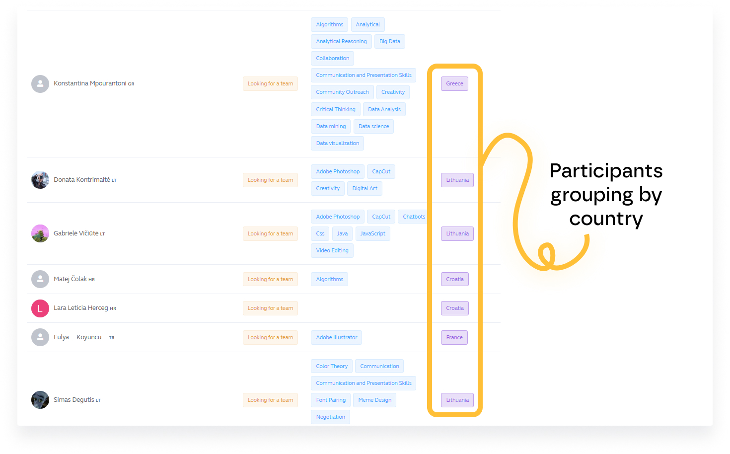 Participants were automatically marked upon registration with their local hackathon group, so organizers could: